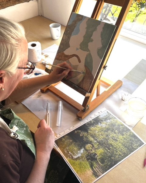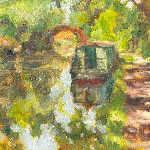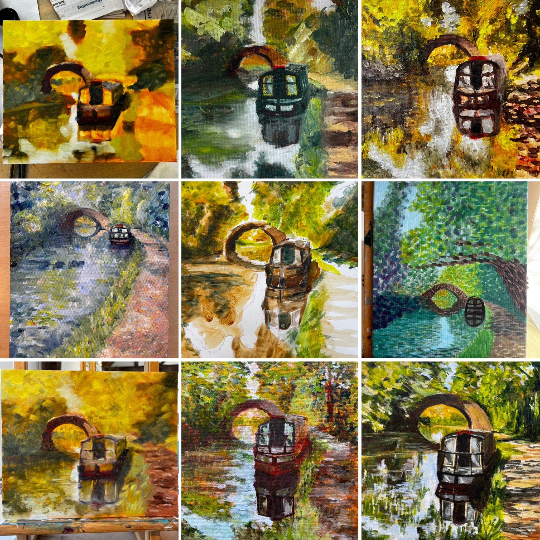 Spring has well and truly arrived at Micklem’s Farm in Berkshire - we couldn’t have picked a better day yesterday to be capturing light and painting landscapes in the style of ‘The Impressionists’. Lunch in the garden, free flowing tea and coffee, and a lovely group of students up for the challenge of painting a canal boat scene in either acrylics or oils.
