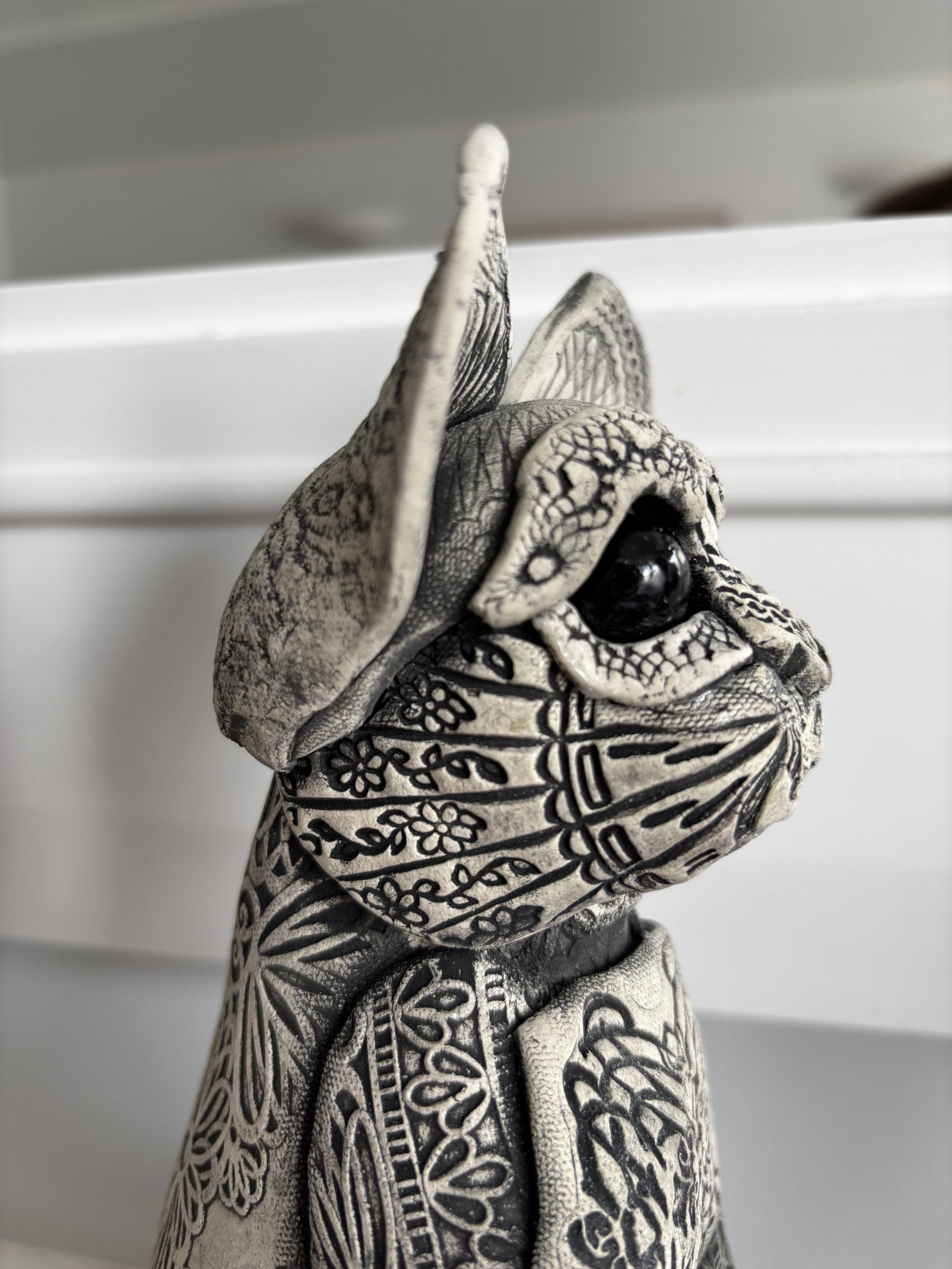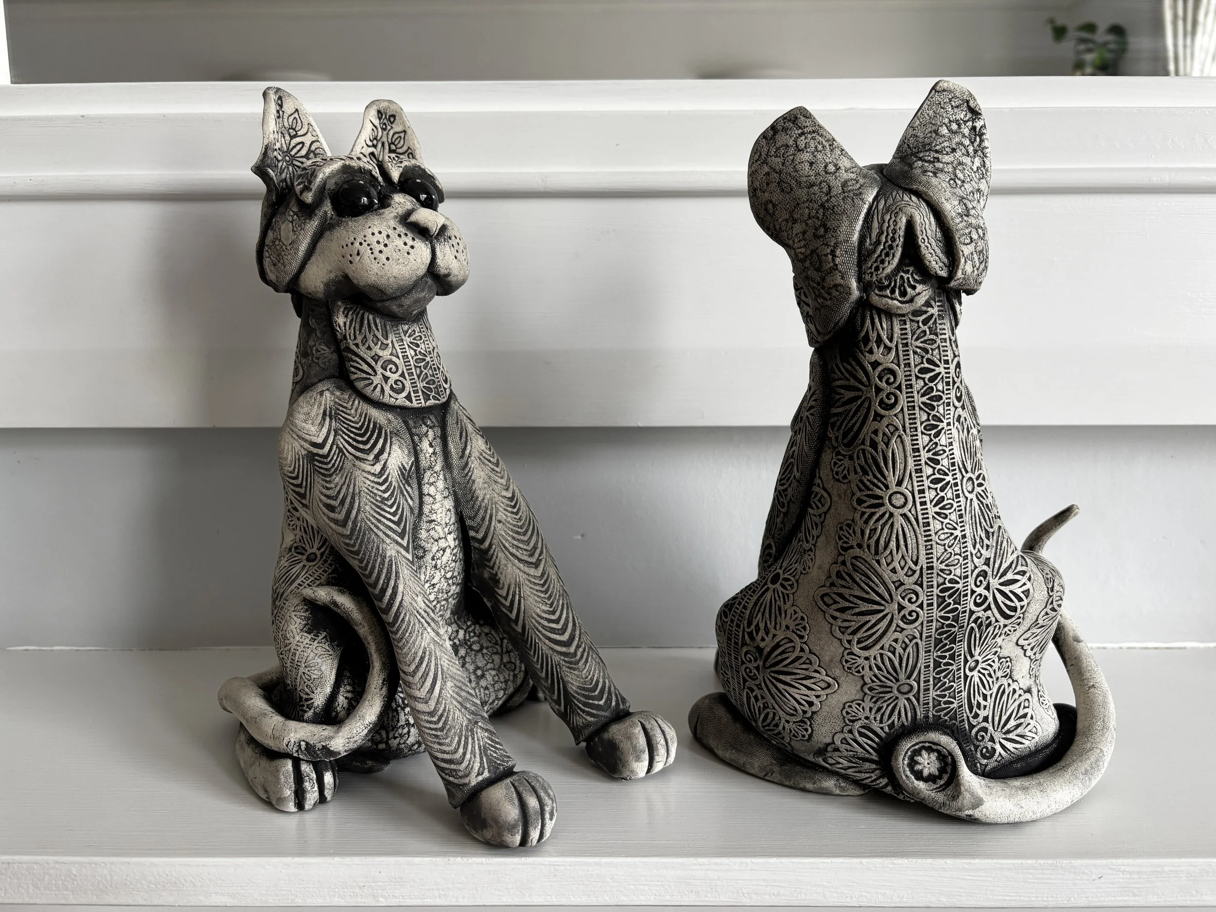Below: The back of my ceramic cat (right) is so much better than the front! The side of the head is ok as well… but as for the rest - I need to try again! So for now it sits facing the wall ;)