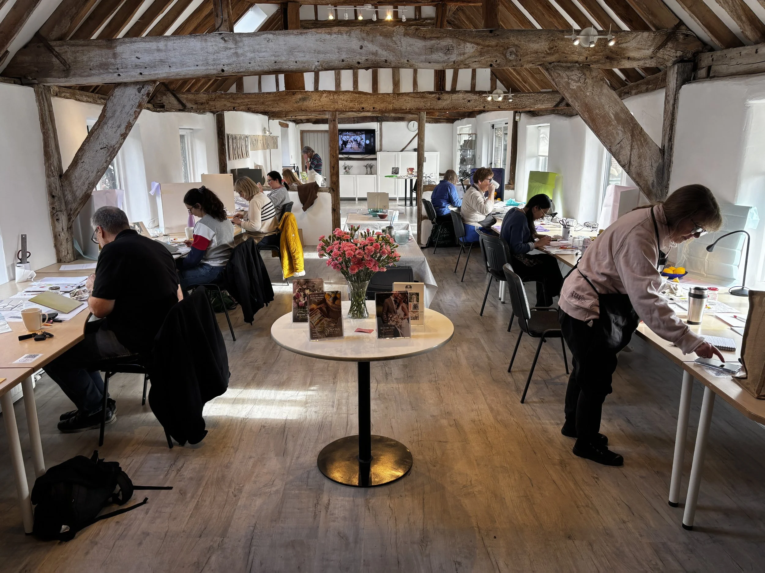 A recent workshop at the beautiful Micklem’s Farm Creative Workshops where the students painted a still life using a limited palette of just 3 colours (plus white).